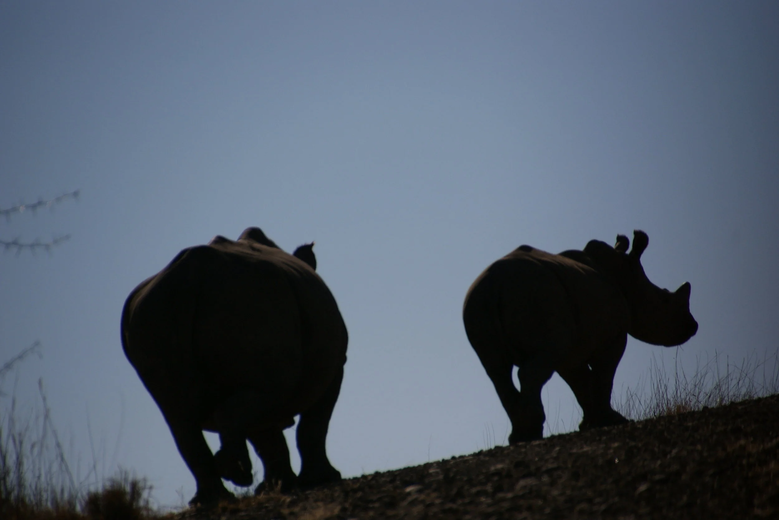 De eerste neushoorns. Toch spannend in een Hyundai I10....