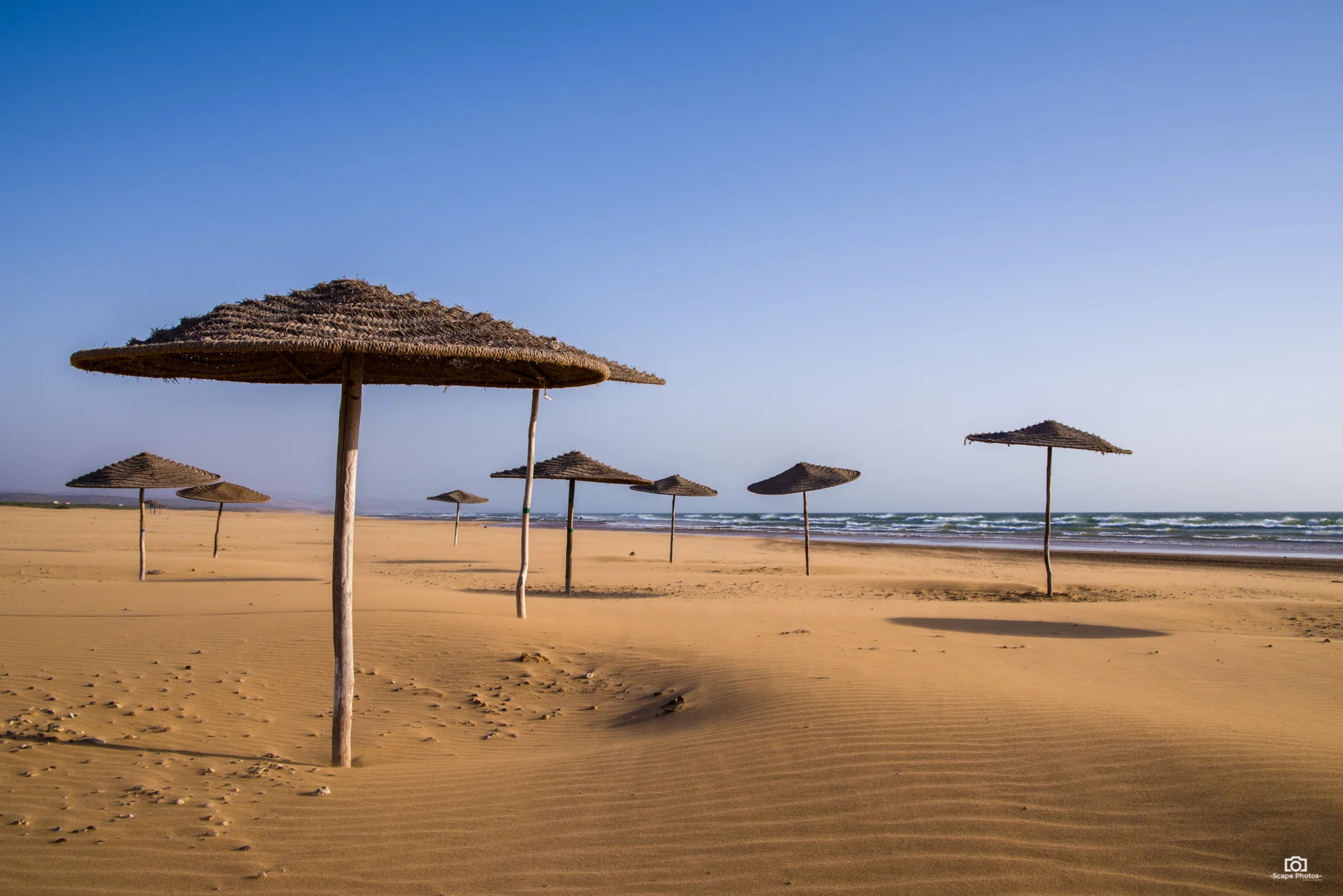 Geen OLA paraplu op het strand in Sidi Kaouki.