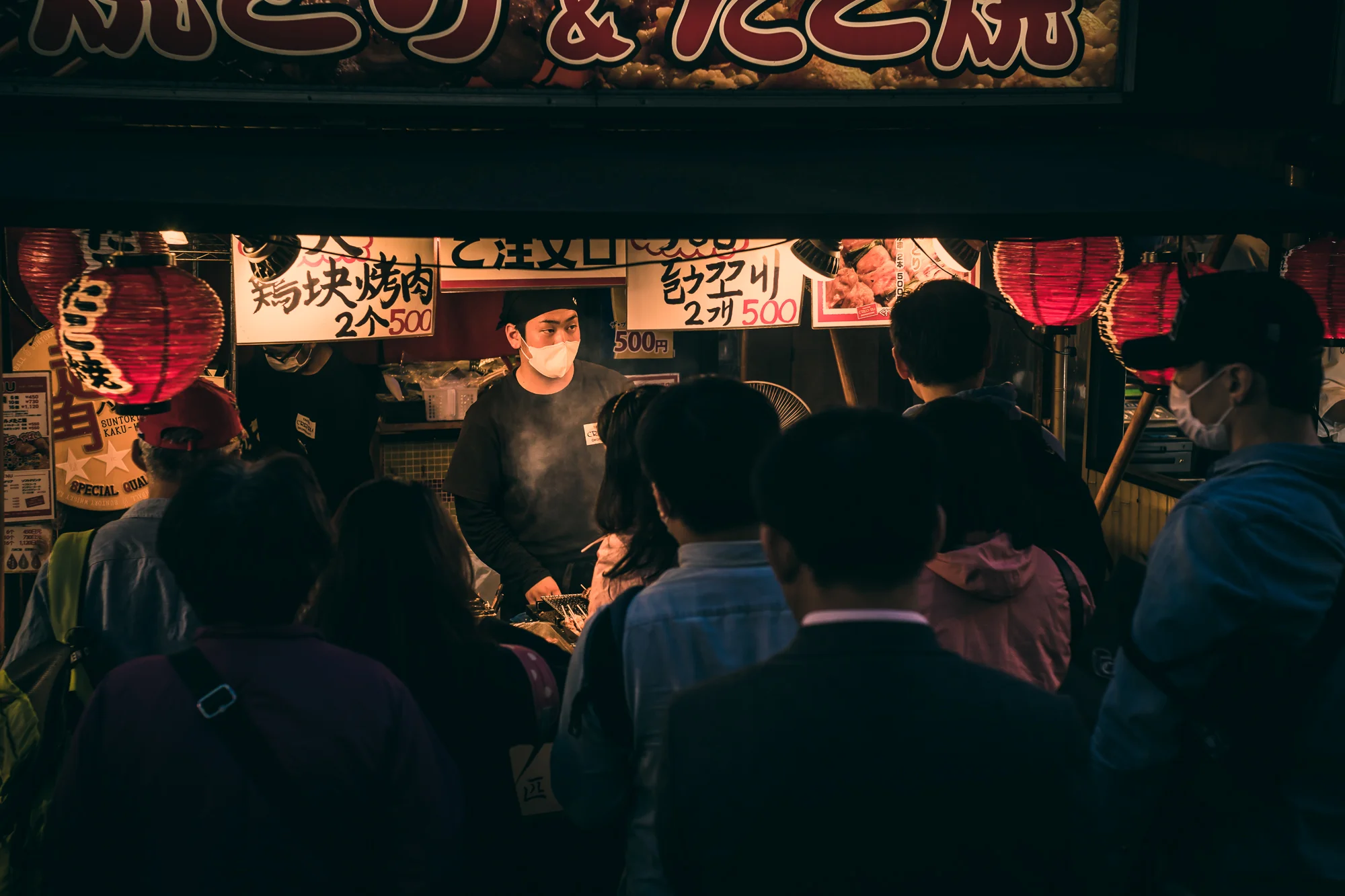 Na mijn Octopusbal-ongeval van eerder op de avond was ik gewaarschuwd voor Japans streetfood. Daarom ben ik de straat opgegaan om foto's te maken.