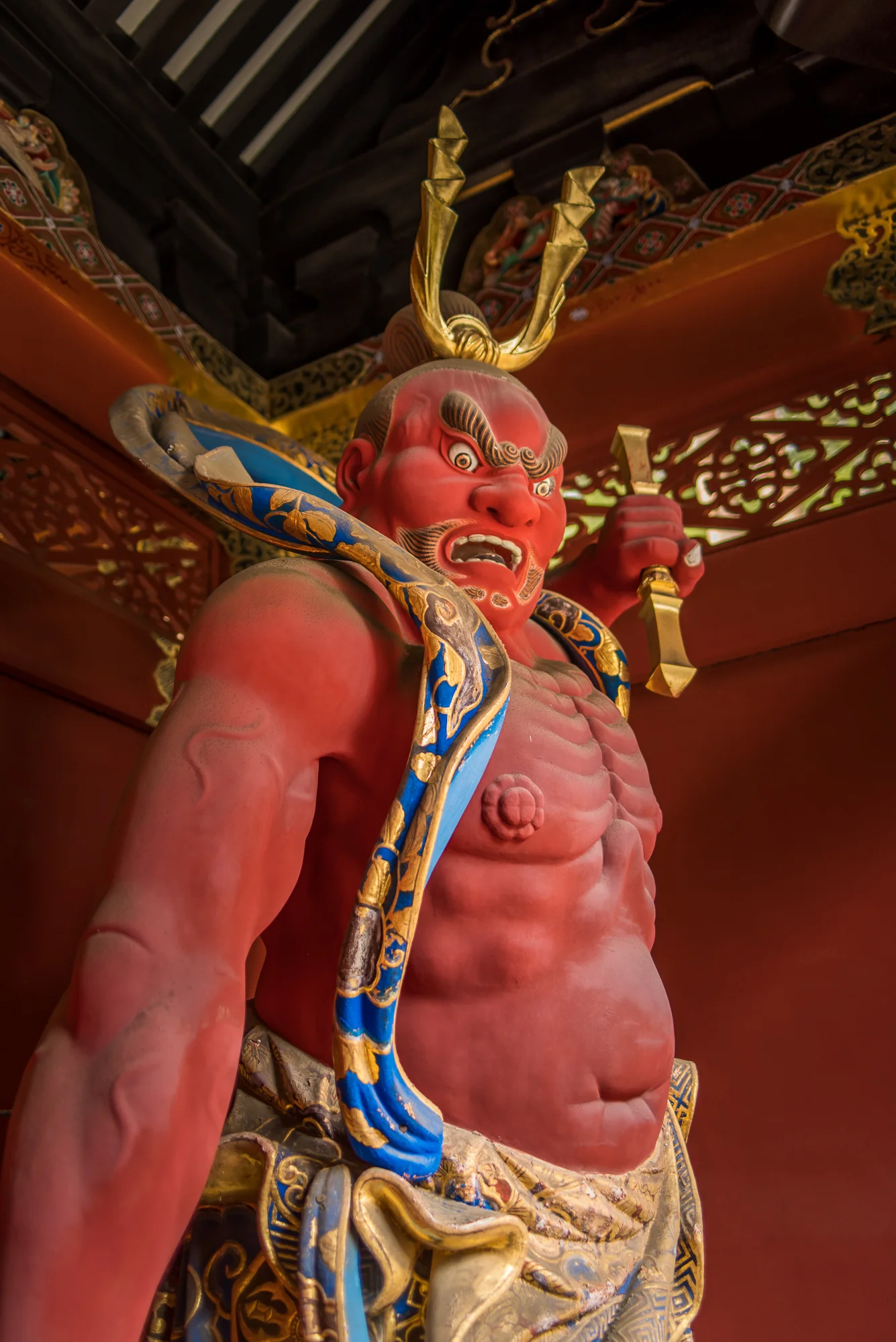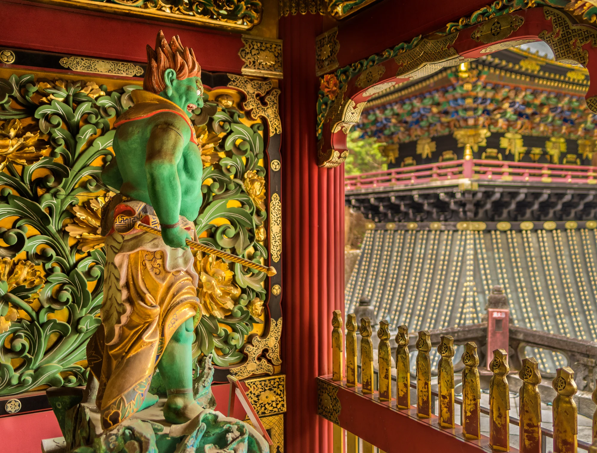 Elk mausoleum wordt bewaakt door 2 stevige poortwachters. Deze waken over het complex en zijn daarom voorzien van angstaanjagende uitdrukkingen, allerlei wapentuig en een stevige sixpack. Als je deze poortwachters bent gepasseerd kom je op de eerste binnenplaats. Binnen het Shinto geloof is dit de plek waar je, je handen wast. Dit is symbool voor de reiniging van de ziel. Dit ritueel voer je uit om vervolgens door te mogen lopen naar het binnenste van het complex.