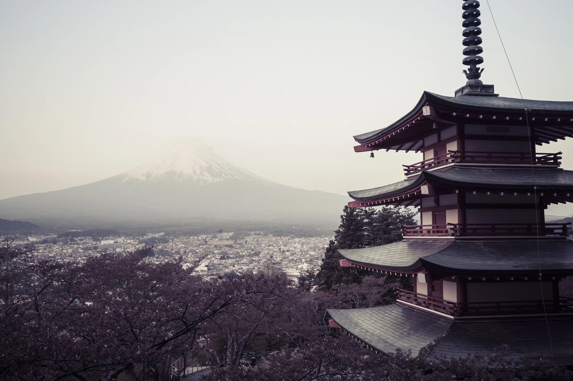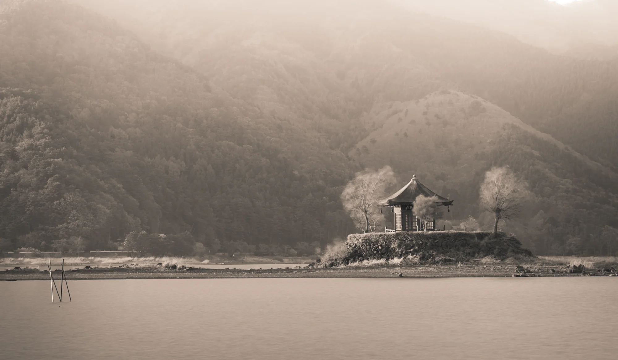 Ons verblijf rondom Fuji was beperkt tot 2 nachten. Toch hebben we bijna elke ochtend en avond wel gebruikt om speciale plekken te bezoeken. Overdag hebben we gebruikt om te wandelen. De volgende foto's heb ik gemaakt tijdens een geweldige wandeltocht langs de oever van één van de 5 meren die rond Fuji-San ligt. De oever is voorzien van een kronkelend wandelpad door stukjes bos, strand en over promenades. Langs de route staan een hoop kersenbomen maar ook kleine tempeltjes. Dat maakt het lopen lekker afwisselend en gaf genoeg onderwerpen om de uitdaging die ik mijzelf had gesteld te voldoen. Namelijk om de kersenbloesem en de Fuji berg op een originele manier te fotograferen of om de foto te bewerken tot een origineel resultaat.