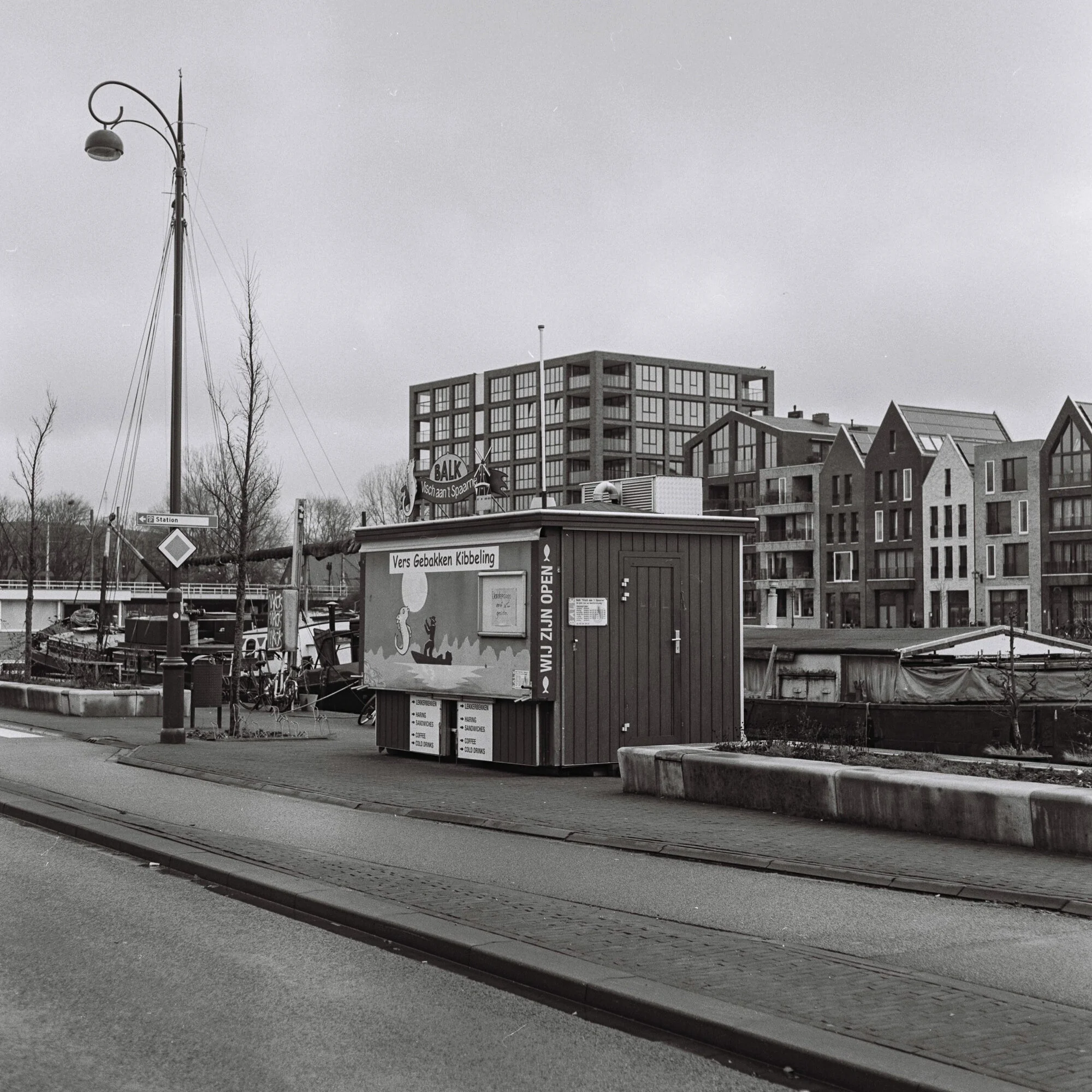 Daarom ben ik de afgelopen weken met de analoge toestellen naar buiten gegaan om het centrum te fotograferen. Dit heb ik meestal gedaan met zwart en wit film in de camera’s, maar bij wijze van test ook kleurenfilm.